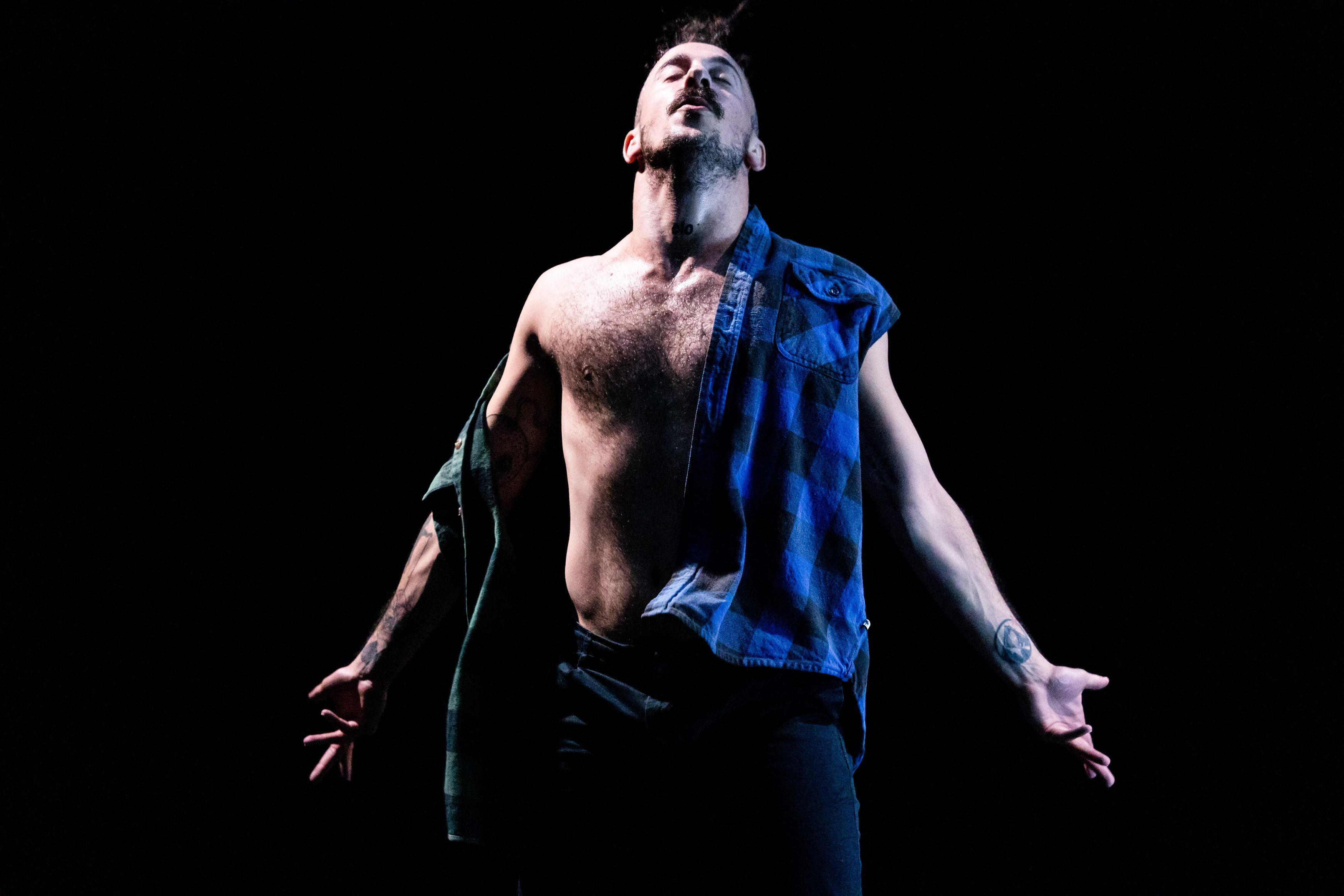 « Go Go Go Go » ! Urge musician and composer Dag Taeldeman and drummer Andrew Van Ostade in this electrifying dance concert. Wrapped up in intoxicating repetitive rhythm, transcended by the voice of soprano Lies Vandewege, the audience enters the dance led by Sardinian performer Matteo Sedda, rooted in the folk tradition of the Italian tarantella. Here everything interweaves and merges, reaching an emotional paroxysm: a magnetic oscillation between electro, guitar, drums and ritual music, electrified bodies and vocal power. BodyBodyBodyBody is a tidal wave that sweeps everything away, drawing its evocative power from the magic of folk traditions and treading a fine line between dance and music, past and present. Exhilaration, amazement, exhaustion, enjoyment…come and feel it!
